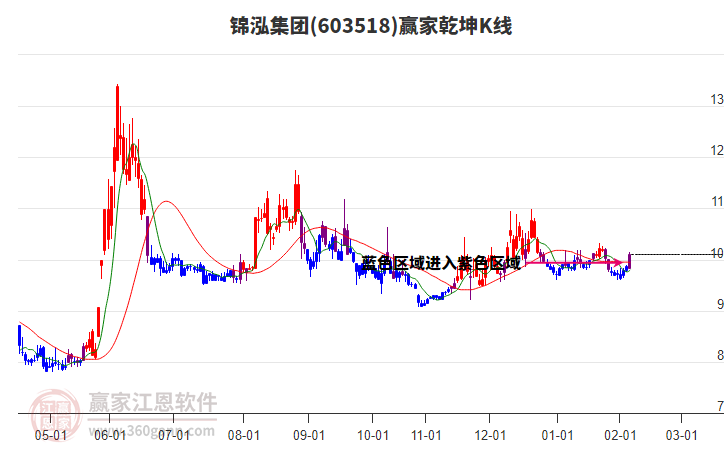 錦泓集團(603518)處于贏家江恩多頭主線形態(tài),從2月2日形成底分型后持續(xù)上攻,今日突破前高形成初次江恩筑底信號,中長期多頭趨勢依舊保持。錦泓集團(603518)根據(jù)贏家江恩極反通道趨勢工具展示,上