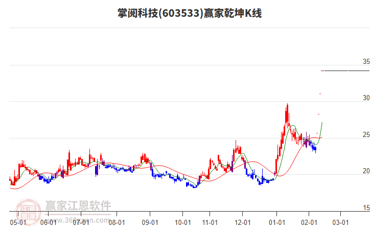 掌閱科技漲至老子十二宮上漲結(jié)構(gòu)頂部上方區(qū)域內(nèi) 近3個交易日漲幅33.15%
