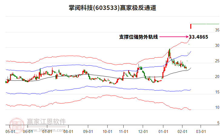 今天603533掌閱科技漲停,突破強勢外軌線后延續(xù)上漲趨勢