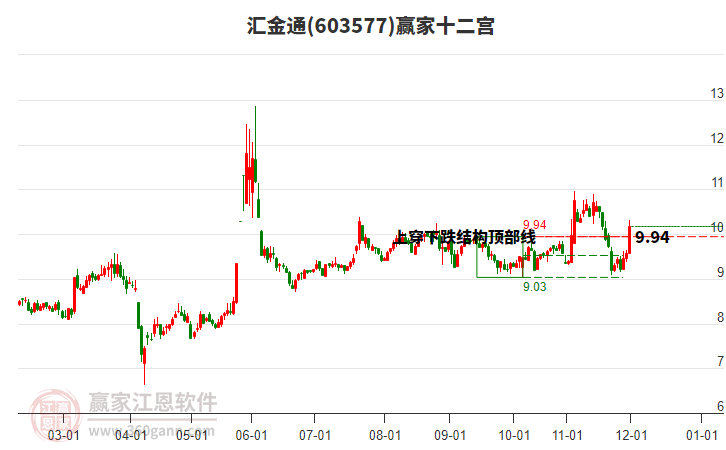 匯金通根據(jù)贏家江恩極反通道趨勢(shì)工具展示,上方壓力位11.9361,下方支撐位10.4836。匯金通處于贏家江恩多頭次主線(xiàn)形態(tài),12月15日發(fā)出江恩筑底信號(hào)后,經(jīng)過(guò)50日,今日形成短期筑頂信號(hào),短期多頭