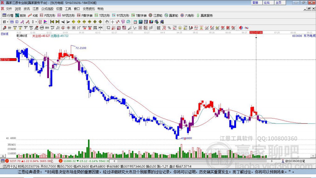 東方電纜從高點(diǎn)65.12,持續(xù)回調(diào)了17天,跌破極反通道生命線
