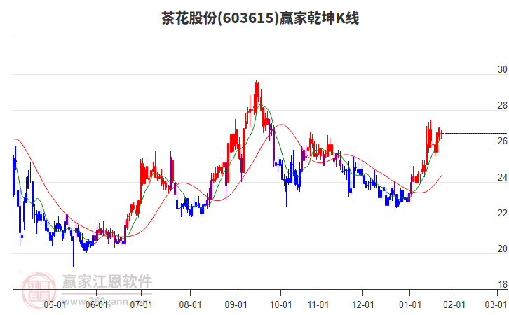 當天茶花股份(603615)收盤價為24.95,小幅下跌2.84%,近期高點是27.45元,時間是2026年1月16日,到現(xiàn)在已經(jīng)下跌7天,共跌去了2.5元,跌幅為10.02%。