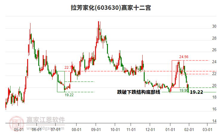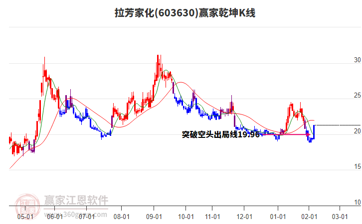 拉芳家化(603630)從高點(diǎn)24.56,持續(xù)回調(diào)了7天,跌破乾坤K線多頭出局線,短期出現(xiàn)走弱信號(hào)