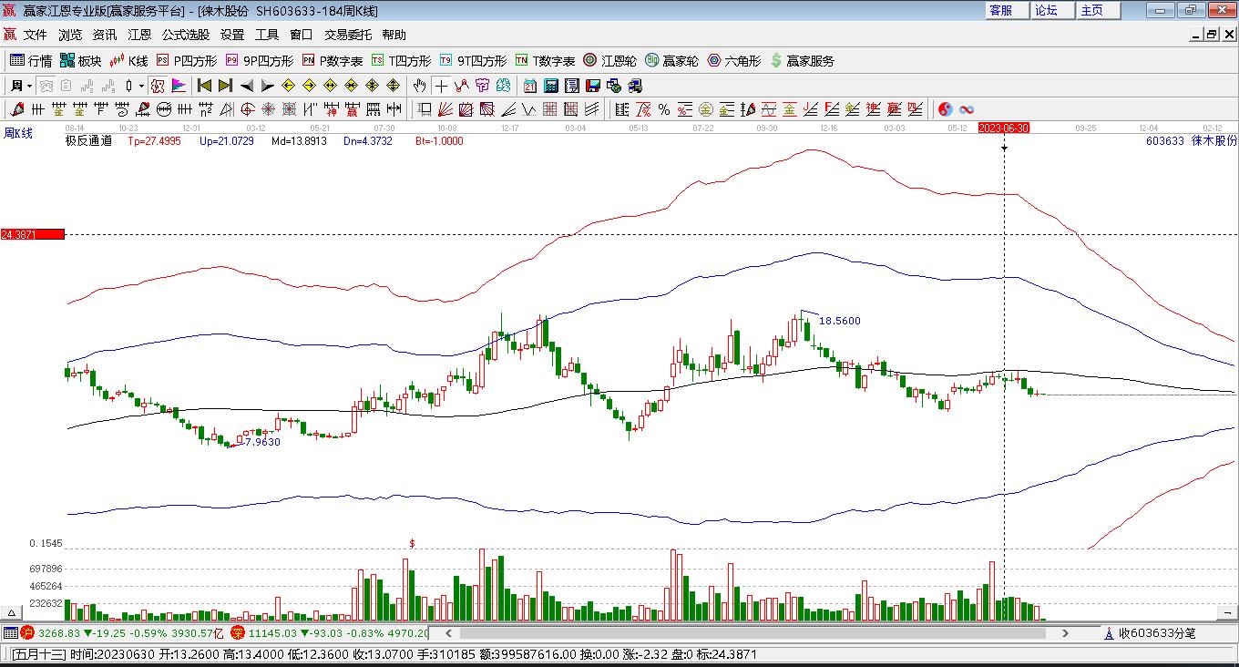 徠木股份(603633)處于贏家江恩多頭次主線形態(tài),12月26日發(fā)出江恩筑底信號后,經(jīng)過4日,今日形成短期筑頂信號,短期多頭趨勢已被破壞,中長期目前都處于回調(diào)中。徠木股份(603633)根據(jù)贏家江恩極