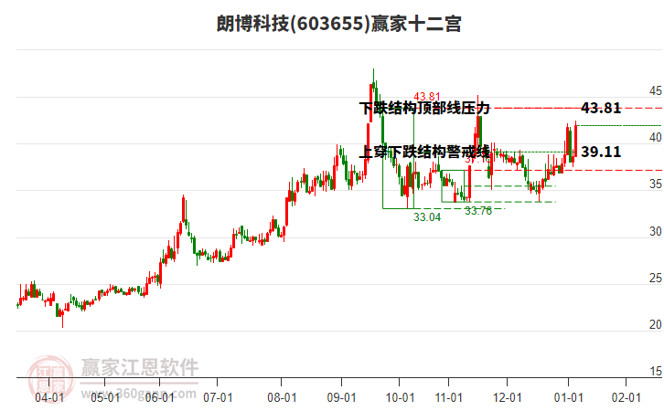 該股自近期高點(diǎn)45.95跌至今日41.19,共下跌4.76元,跌幅11.56%,當(dāng)前股價(jià)處于2026年1月13日形成的上漲結(jié)構(gòu)頂部線與警戒線之間。依據(jù)贏家十二宮多空能量守恒規(guī)則,若多方能量再度聚集發(fā)力上攻,上方平衡位置關(guān)注結(jié)構(gòu)頂部線45.77尋找平衡位;若跌破警戒線,空方繼續(xù)主導(dǎo),則將進(jìn)一步下探往結(jié)構(gòu)底部線36.87尋找平衡位。