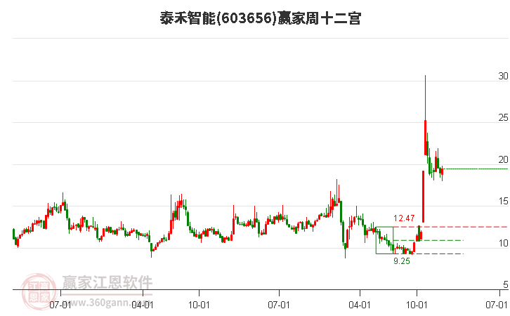 泰禾智能處于贏家江恩多頭次主線形態(tài),1月5日發(fā)出江恩筑底信號后,經(jīng)過16日,今日形成短期筑頂信號,短期多頭趨勢已被破壞,中長期多頭趨勢依舊保持。泰禾智能根據(jù)贏家江恩極反通道趨勢工具展示,上方壓力位25