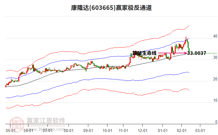 康隆達根據(jù)贏家江恩極反通道趨勢工具展示,上方壓力位39.7936,下方支撐位33.012??德∵_處于贏家江恩多頭次主線形態(tài),從2月9日形成頂分型后持續(xù)下跌,重心下移,今日跌破前低形成短期初次筑頂信號,
