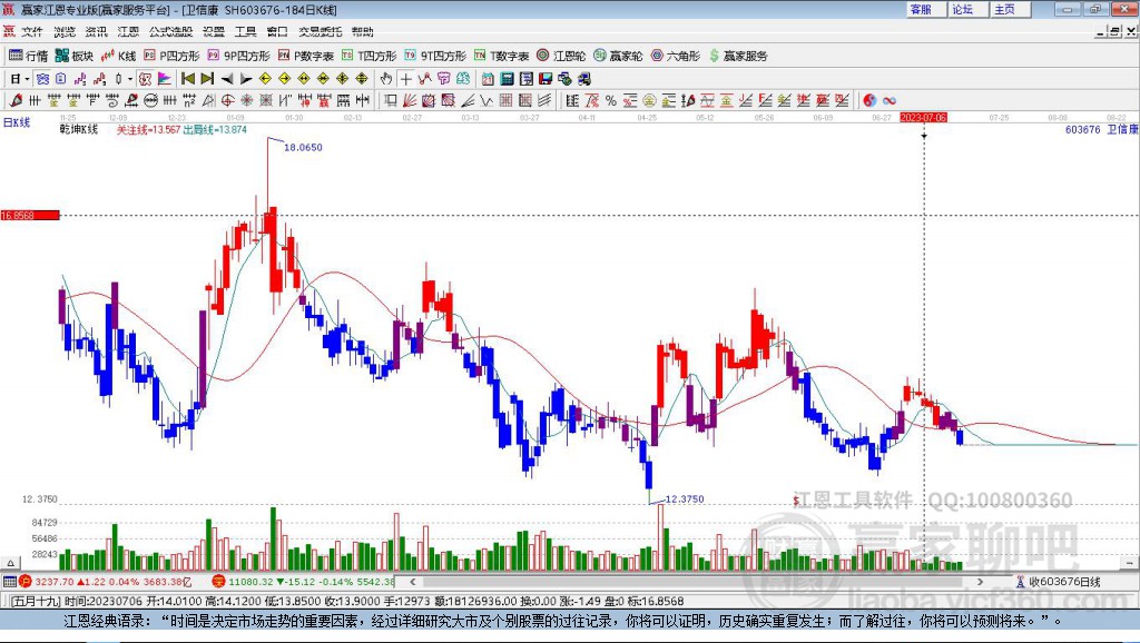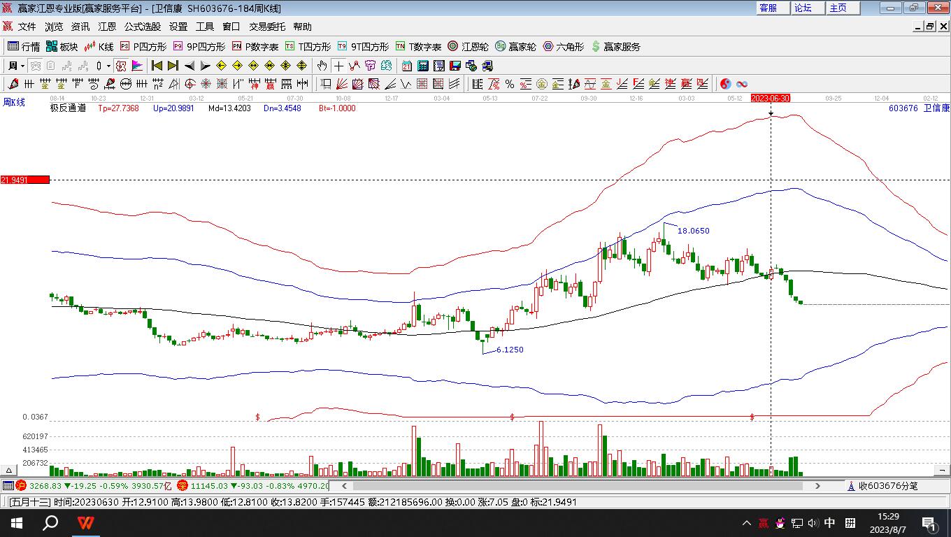 603676衛(wèi)信康處于贏家江恩多頭次主線形態(tài),1月5日發(fā)出江恩筑底信號(hào)后,經(jīng)過23日,今日形成短期筑頂信號(hào),短期多頭趨勢(shì)已被破壞,中期多頭趨勢(shì)延續(xù),但長(zhǎng)期處于回調(diào)中。603676衛(wèi)信康根據(jù)贏家江恩極反