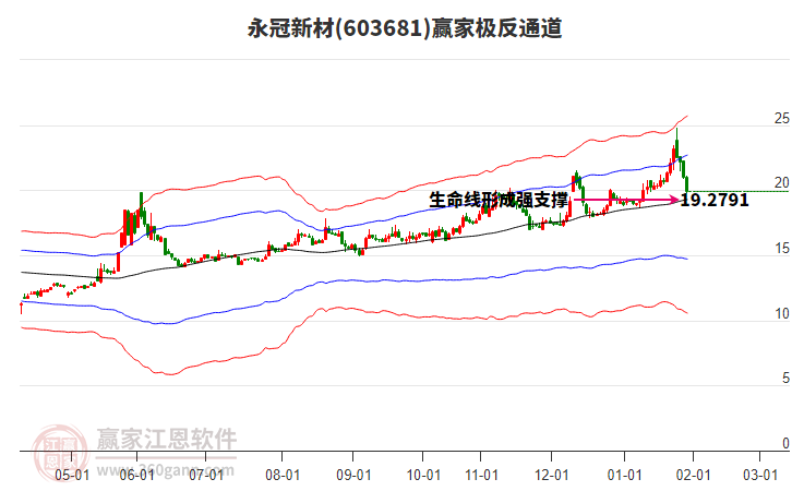 依據(jù)贏家江恩系統(tǒng)趨勢工具極反通道分析判斷永冠新材603681運(yùn)行在生命線以上強(qiáng)勢區(qū)域,根據(jù)規(guī)則該股可短線、波段結(jié)合操作;結(jié)合物極必反的原理通過分鐘圖做盤中差價(jià),應(yīng)用口訣是:生命線上強(qiáng)勢走,生命線下難抬頭;紅黃兩條外軌線,壓力支撐顯勢頭。