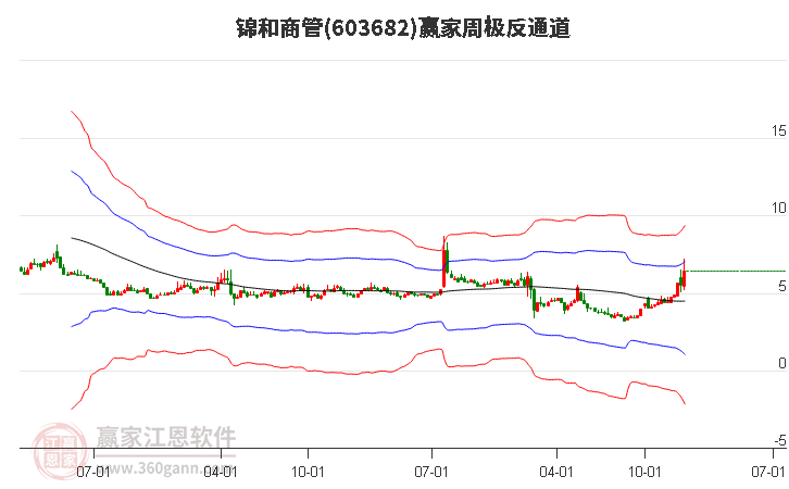 今天603682錦和商管最高價7.17挑戰(zhàn)了贏家極反通道工具藍色外軌線,受到藍色外軌線強力壓制,最終收盤停留在在藍色外軌線與生命線上方的強勢通道區(qū)域。603682錦和商管近10個交易日漲幅12.69%