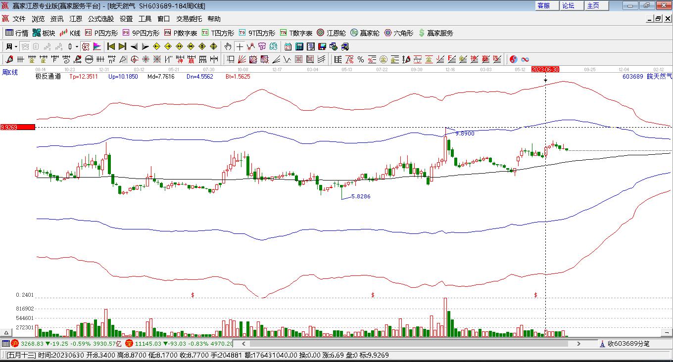 603689皖天然氣根據(jù)贏家江恩極反通道趨勢(shì)工具展示,上方壓力位9.388,下方支撐位8.7712。603689皖天然氣處于贏家江恩多頭次主線形態(tài),8月27日發(fā)出江恩筑底信號(hào)后,經(jīng)過(guò)82日,今日形成短
