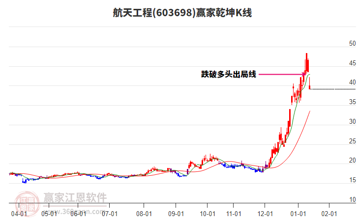 依據(jù)贏家江恩系統(tǒng)趨勢(shì)工具極反通道分析判斷航天工程603698運(yùn)行在生命線以下弱勢(shì)區(qū)域,根據(jù)規(guī)則該股短線輕倉(cāng)參與,股價(jià)跌至弱勢(shì)外軌線后波段再結(jié)合其它工具信號(hào)建倉(cāng)。應(yīng)用口訣是:生命線上強(qiáng)勢(shì)走,生命線下難抬頭;紅黃兩條外軌線,壓力支撐顯勢(shì)頭。