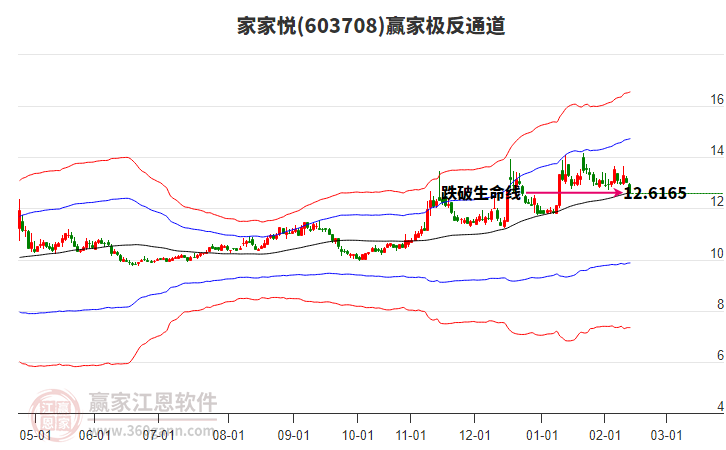 依據(jù)贏家江恩系統(tǒng)趨勢工具極反通道分析判斷家家悅603708運(yùn)行在生命線以下弱勢區(qū)域,根據(jù)規(guī)則該股短線輕倉參與,股價跌至弱勢外軌線后波段再結(jié)合其它工具信號建倉。應(yīng)用口訣是:生命線上強(qiáng)勢走,生命線下難抬頭;紅黃兩條外軌線,壓力支撐顯勢頭。