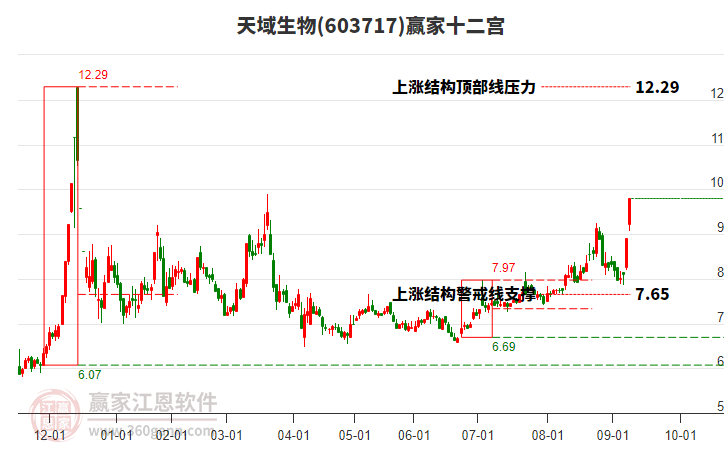 603717天域生物處于贏家江恩空頭主線形態(tài),1月22日發(fā)出江恩筑底信號后,經(jīng)過5日,今日形成短期筑頂信號,短期多頭趨勢已被破壞,中期多頭反彈趨勢延續(xù),但長期處于下跌中。603717天域生物根據(jù)贏家江
