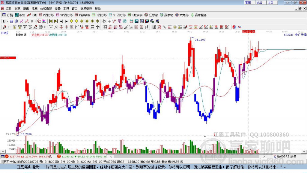 依據(jù)贏家江恩趨勢(shì)工具技術(shù)分析得出,目前處于短線上漲趨勢(shì)中, 依據(jù)贏家江恩價(jià)格工具得出:當(dāng)前支撐位:15.59,當(dāng)前阻力位:22.55,由贏家江恩時(shí)間周期工具展示得出:下一個(gè)時(shí)間窗口為。