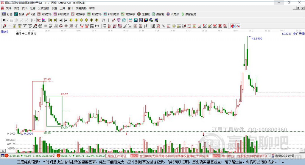 風(fēng)險(xiǎn)提示:本頁(yè)面利用《贏家江恩軟件》《贏家十二宮軟件》系列工具客觀數(shù)據(jù)進(jìn)行數(shù)據(jù)模型運(yùn)算,系軟件圖表語(yǔ)言,由此得出的相關(guān)結(jié)論,不供參考,不構(gòu)成任何投資建議。贏家財(cái)富網(wǎng)版權(quán)所有,轉(zhuǎn)載請(qǐng)注明出處。