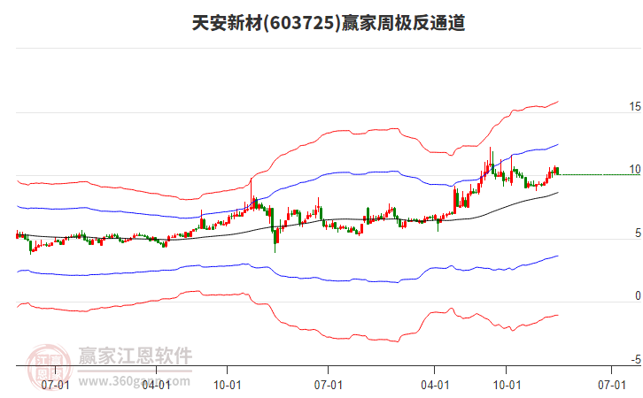 今日603725天安新材最高價(jià)10.75挑戰(zhàn)了贏家極反通道工具藍(lán)色外軌線,受到藍(lán)色外軌線強(qiáng)力壓制,最終收盤(pán)停留在在藍(lán)色外軌線與生命線上方的強(qiáng)勢(shì)通道區(qū)域。603725天安新材近10個(gè)交易日漲幅3.01%