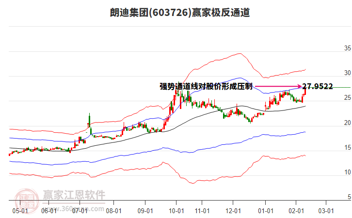 2月10日朗迪集團603726最高價28.0上穿了贏家極反通道工具藍色外軌線,受到藍色外軌線強力壓制,最終收盤停留在在藍色外軌線與生命線上方的強勢通道區(qū)域。朗迪集團603726近10個交易日漲幅6.3