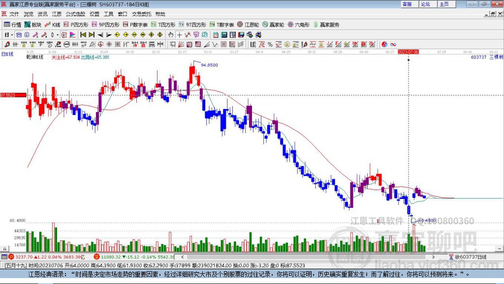 三棵樹603737低開收陽線,贏家江恩費(fèi)氏時(shí)間模型顯示近期時(shí)間窗1月27日