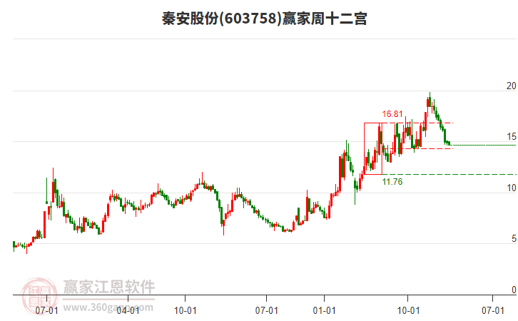 603758秦安股份在高點19.81后,回調(diào)了2.42元,目前處于下跌趨勢