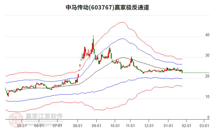603767中馬傳動(dòng)根據(jù)贏家江恩極反通道趨勢(shì)工具展示,上方壓力位24.26,下方支撐位19.8912。603767中馬傳動(dòng)處于贏家江恩多頭中期回調(diào)形態(tài),從12月17日形成底分型后持續(xù)上攻,今日突破前高