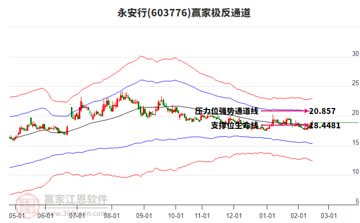 依據(jù)贏家江恩系統(tǒng)趨勢(shì)工具極反通道分析判斷永安行603776運(yùn)行在生命線以下弱勢(shì)區(qū)域,根據(jù)規(guī)則該股短線輕倉(cāng)參與,股價(jià)跌至弱勢(shì)外軌線后波段再結(jié)合其它工具信號(hào)建倉(cāng)。應(yīng)用口訣是:生命線上強(qiáng)勢(shì)走,生命線下難抬頭;紅黃兩條外軌線,壓力支撐顯勢(shì)頭。
