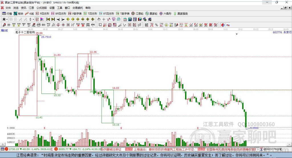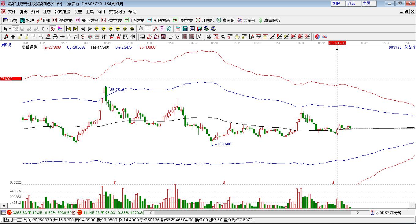 依據(jù)贏家江恩極反通道趨勢工具展示,該股于12月31日低點(diǎn)17.48,展開一波上攻,至本周持續(xù)6周,本周股價上穿生命線18.5872,由弱勢通道進(jìn)入強(qiáng)勢通道,依據(jù)贏家江恩極反通道規(guī)則,站穩(wěn)一線看高一線。若能有效站穩(wěn)生命線,則有望持續(xù)上攻至強(qiáng)勢通道線附近,若不能站穩(wěn)生命線,將繼續(xù)在弱勢通道運(yùn)行。