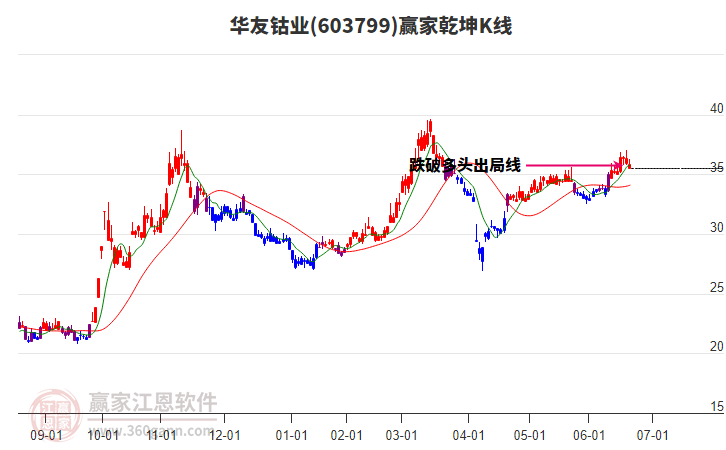依據(jù)贏家江恩系統(tǒng)趨勢(shì)工具極反通道分析判斷華友鈷業(yè)603799運(yùn)行在生命線以下弱勢(shì)區(qū)域,根據(jù)規(guī)則該股短線輕倉(cāng)參與,股價(jià)跌至弱勢(shì)外軌線后波段再結(jié)合其它工具信號(hào)建倉(cāng)。應(yīng)用口訣是:生命線上強(qiáng)勢(shì)走,生命線下難抬頭;紅黃兩條外軌線,壓力支撐顯勢(shì)頭。