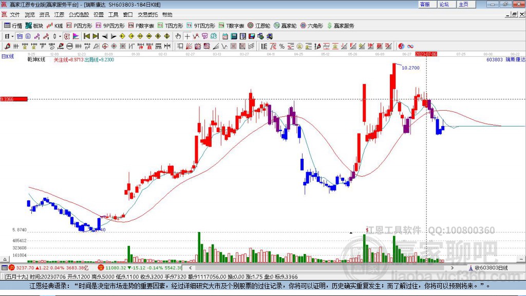 依據(jù)贏家江恩極反通道趨勢工具展示,本周股價(jià)處于生命線上強(qiáng)勢通道,本周收盤價(jià)10.3,自近期通道內(nèi)低點(diǎn)9.6上漲至本周,到達(dá)生命線9.9396點(diǎn)上方,短期關(guān)注此線支撐,如支撐不破,保持在強(qiáng)勢通道內(nèi),波段繼續(xù)看多,有望挑戰(zhàn)藍(lán)色上軌線。若跌破生命線9.9396,進(jìn)入弱勢通道,調(diào)整周期繼續(xù)延長。