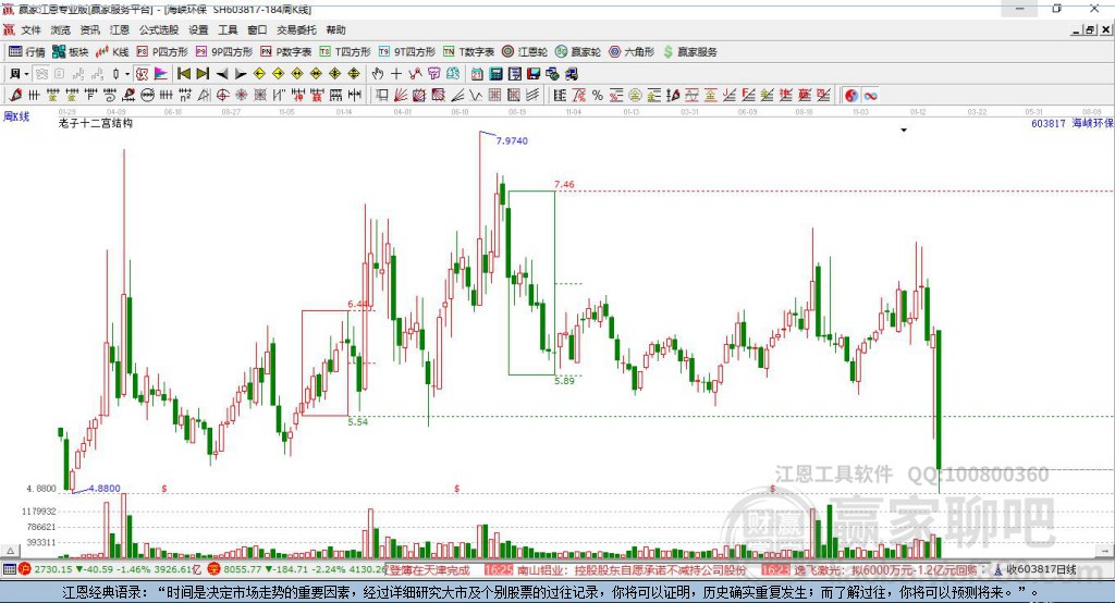 603817海峽環(huán)保處于贏家江恩多頭主線形態(tài),1月7日發(fā)出江恩筑頂信號后,經(jīng)過12日,今日再次發(fā)出江恩底分型并發(fā)出江恩筑底信號,中期雖然處于回調(diào)中,但長期多頭趨勢延續(xù)。603817海峽環(huán)保根據(jù)贏家江恩