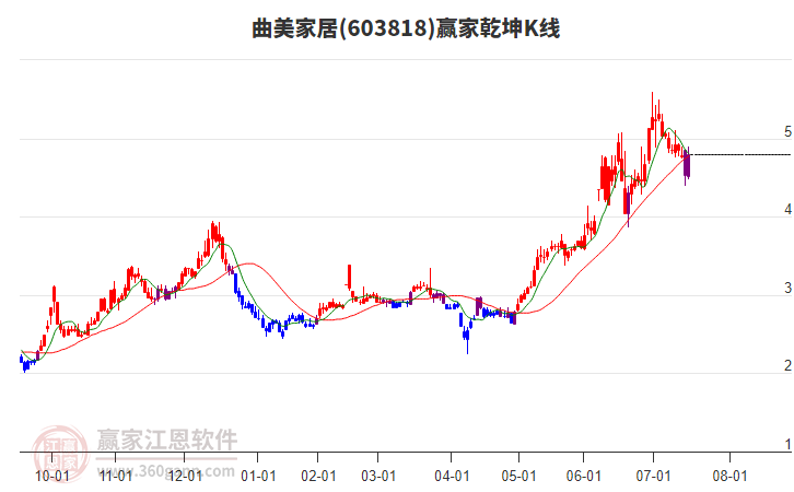 目前曲美家居603818最高價3.78上穿了贏家極反通道工具生命線,受到生命線強力壓制,最終收盤停留在在生命線與藍色下軌線上方的弱勢通道區(qū)域。曲美家居603818近10個交易日漲幅2.22%。