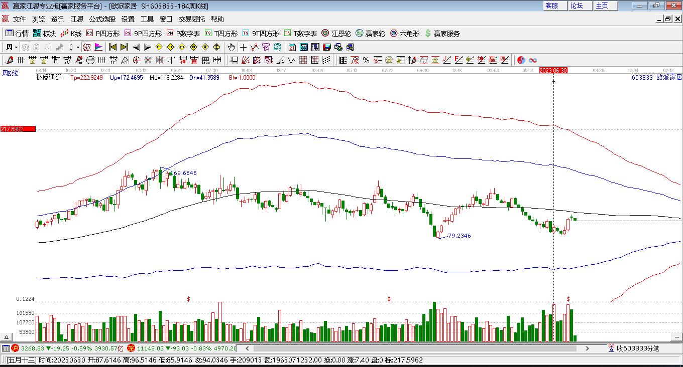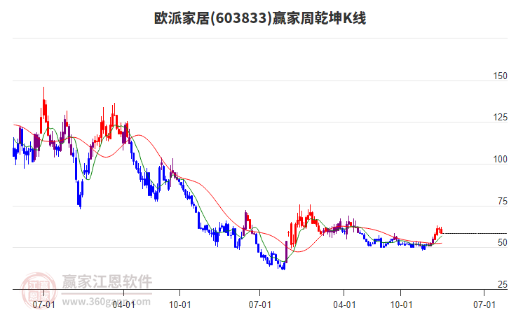 歐派家居603833最高價上穿藍色外軌線 小幅上漲3.59%