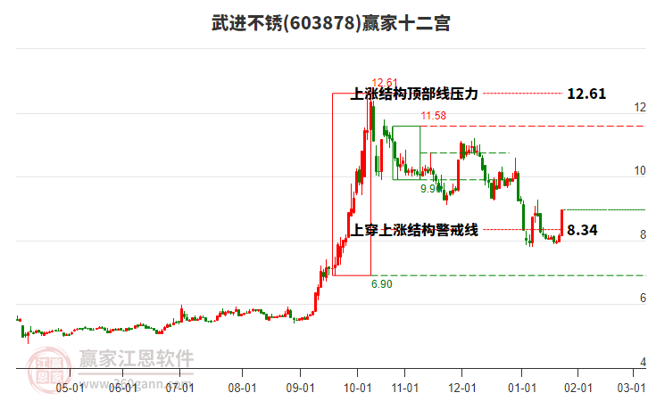 武進不銹(603878)處于贏家江恩多頭中期回調(diào)形態(tài),12月30日發(fā)出江恩筑頂信號后,經(jīng)過23日,今日再次發(fā)出江恩底分型并發(fā)出江恩筑底信號,中長線均在空頭下跌趨勢中。武進不銹(603878)根據(jù)贏家江