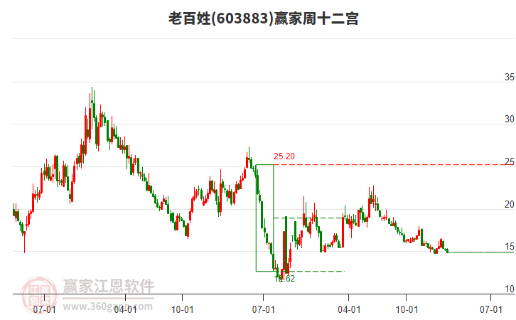 老百姓根據(jù)贏家江恩極反通道趨勢工具展示,上方壓力位15.5788,下方支撐位13.7979。老百姓處于贏家江恩空頭主線形態(tài),從1月23日形成頂分型后持續(xù)下跌,今日形成短期初次筑頂信號,短期多頭趨勢已被