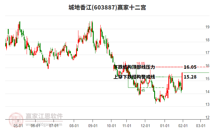 603887城地香江目前漲停,走出獨(dú)立行情。603887城地香江根據(jù)贏家江恩極反通道趨勢工具展示,上方壓力位16.5253,下方支撐位14.4065。603887城地香江處于贏家江恩多頭中期回調(diào)形態(tài),