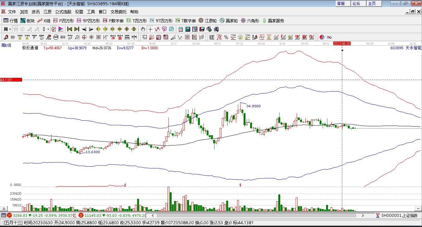 603895天永智能處于贏家江恩多頭主線形態(tài),今日重心上移,短期持續(xù)上漲,從11月21日形成中期底分型后,行情經(jīng)歷一波上漲,突破前高形成中期初次筑底信號(hào),長期處于多頭上漲趨勢。天永智能今日跳空高開,截