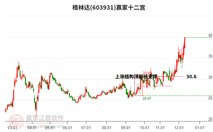 格林達(dá)處于贏家江恩多頭主線形態(tài),從12月31日形成底分型后持續(xù)上攻,今日突破前高形成初次江恩筑底信號(hào),中期雖然處于回調(diào)中,但長(zhǎng)期多頭趨勢(shì)延續(xù)。格林達(dá)今日跳空高開(kāi),截止目前K線中陽(yáng)線,上漲能量較為強(qiáng)勢(shì)。