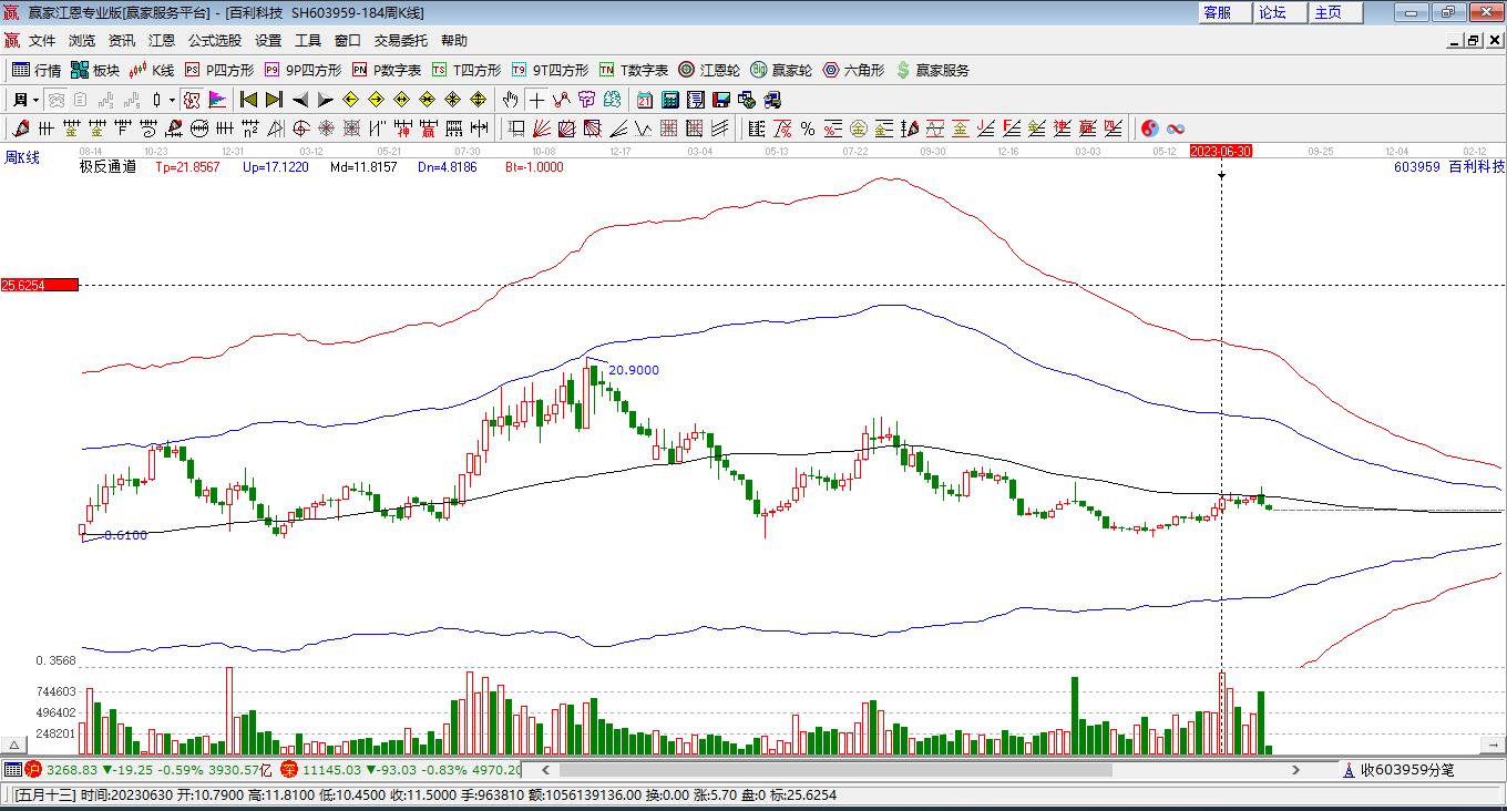 603959百利科技目前漲停,走出獨(dú)立行情。603959百利科技截止目前突破極反通道生命線,根據(jù)贏家江恩極反通道趨勢工具展示,上方壓力位6.8396,下方支撐位5.9552。百利科技今日低開,截止目前