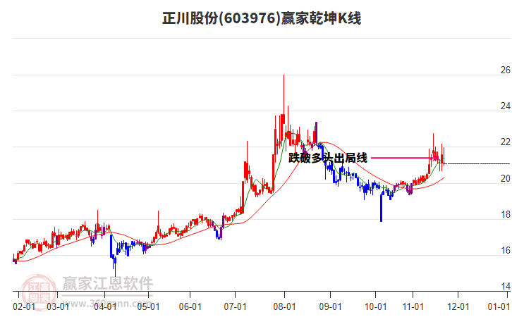 正川股份處于贏家江恩多頭中期回調形態(tài),今日重心持續(xù)下移,短期延續(xù)下跌趨勢,6月30日發(fā)出中期江恩筑底信號后,經(jīng)過163日,今日形成中期筑頂信號,若持續(xù)下跌,觸發(fā)長期筑頂信號,正川股份將轉為空頭主線。正