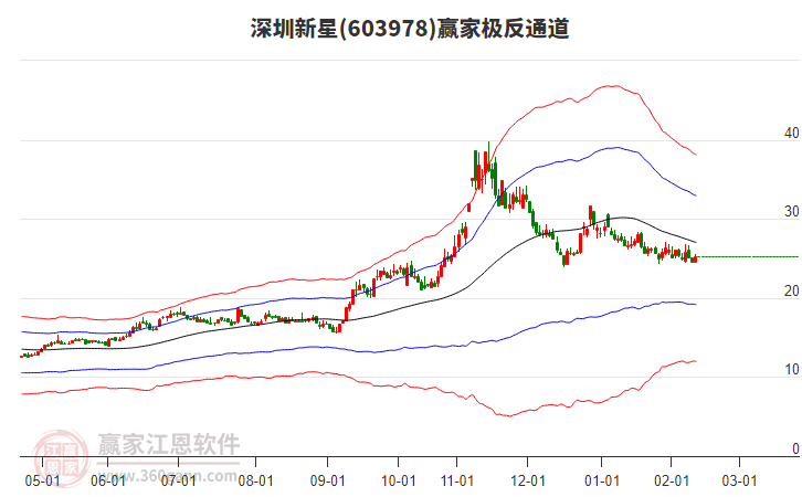 深圳新星(603978)目前漲停,所屬板塊有色金屬、氟化工、股權(quán)轉(zhuǎn)讓、鋰電池、PVDF短期底分型后持續(xù)上攻。深圳新星(603978)截止目前突破極反通道生命線,根據(jù)贏家江恩極反通道趨勢(shì)工具展示,上方壓