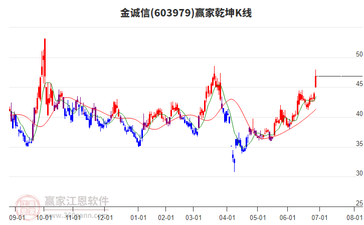 依據(jù)贏家江恩系統(tǒng)趨勢工具極反通道分析判斷金誠信603979運(yùn)行在生命線以上強(qiáng)勢區(qū)域,根據(jù)規(guī)則該股可短線、波段結(jié)合操作;結(jié)合物極必反的原理通過分鐘圖做盤中差價,應(yīng)用口訣是:生命線上強(qiáng)勢走,生命線下難抬頭;紅黃兩條外軌線,壓力支撐顯勢頭。