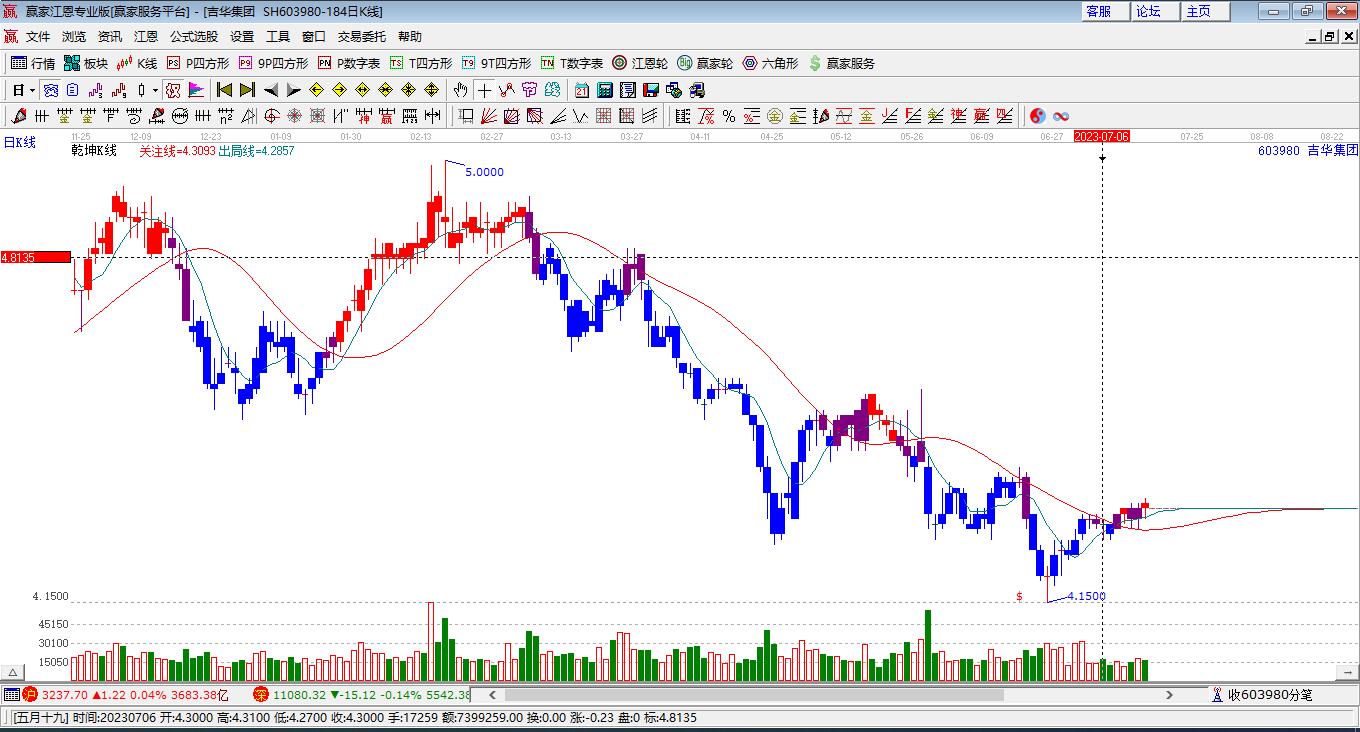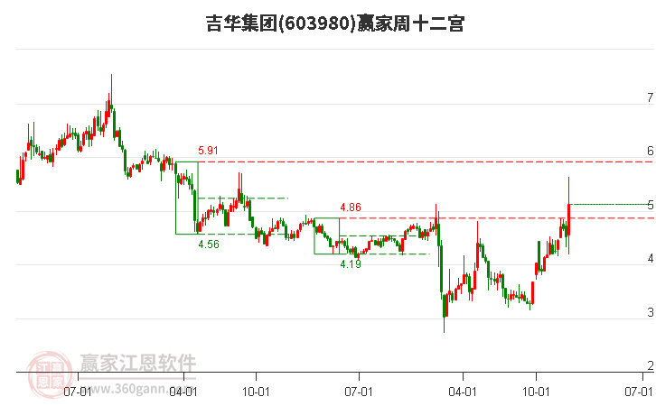 吉華集團(tuán)603980漲至老子十二宮下跌結(jié)構(gòu)底部上方區(qū)域內(nèi) 近6個交易日漲幅57.97%