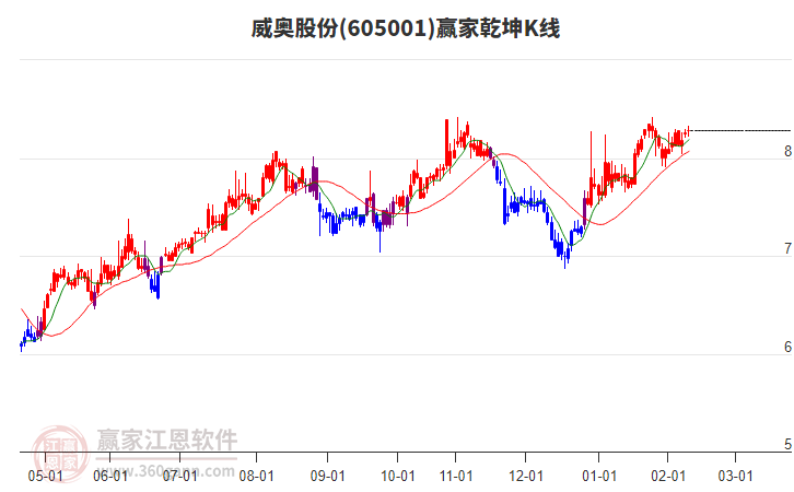 威奧股份(605001)處于贏家江恩多頭中期回調形態(tài),2月4日發(fā)出江恩筑底信號后,經過2日,今日形成短期筑頂信號,短期多頭趨勢已被破壞,中長期多頭趨勢依舊保持。威奧股份(605001)根據贏家江恩極反