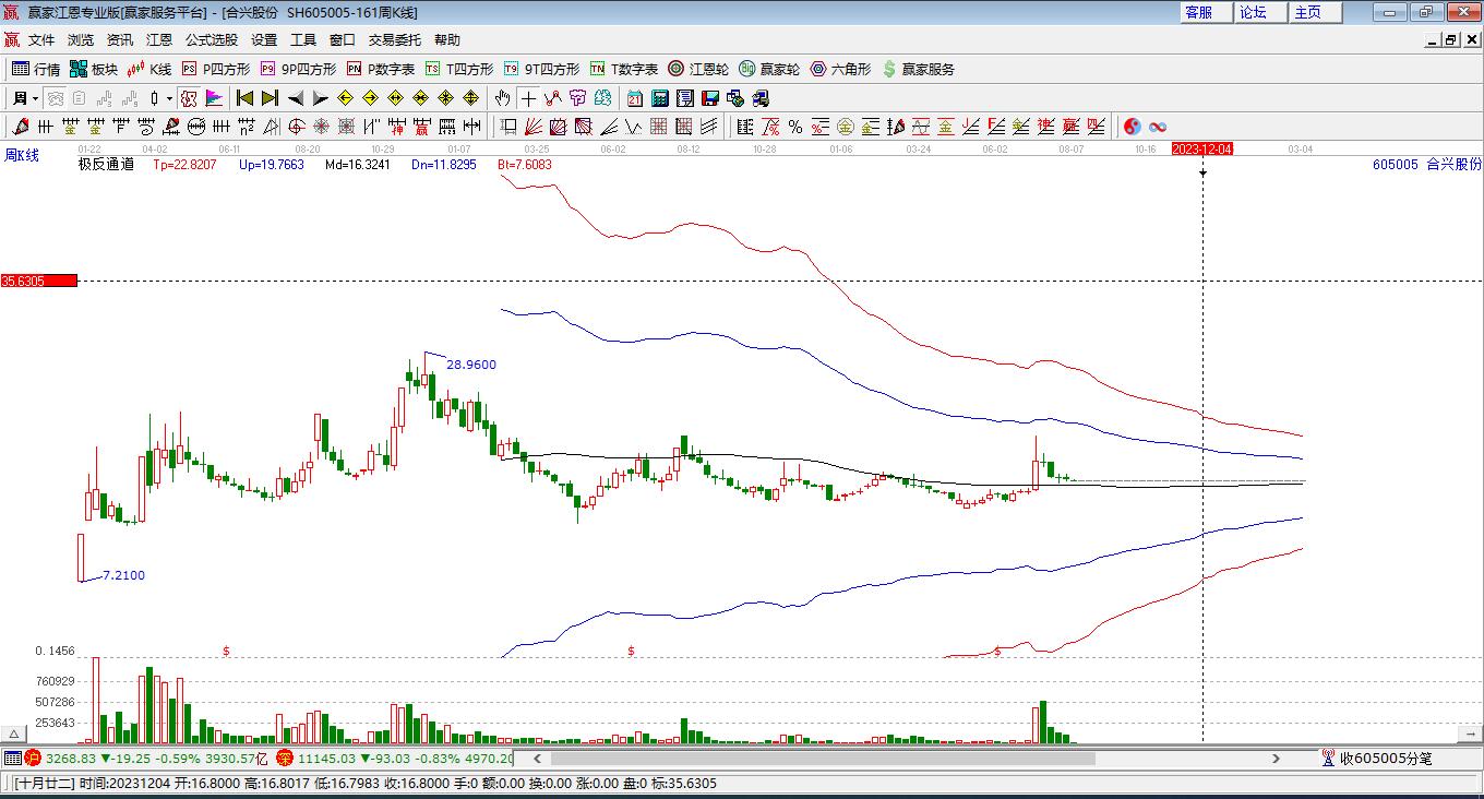 依據(jù)贏家江恩極反通道趨勢工具展示,本周股價處于生命線上強勢通道,本周收盤價19.24,自近期通道內低點18.46上漲至本周,到達生命線17.9863點上方,短期關注此線支撐,如支撐不破,保持在強勢通道內,波段繼續(xù)看多,有望挑戰(zhàn)藍色上軌線。若跌破生命線17.9863,進入弱勢通道,調整周期繼續(xù)延長。