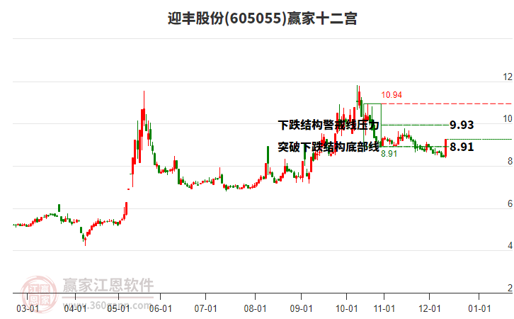 迎豐股份(605055)處于贏家江恩多頭次主線形態(tài),12月12日發(fā)出江恩筑底信號后,經(jīng)過25日,今日形成短期筑頂信號,短期多頭趨勢已被破壞,中長期多頭趨勢依舊保持。迎豐股份今日低開后持續(xù)下跌,截止目前