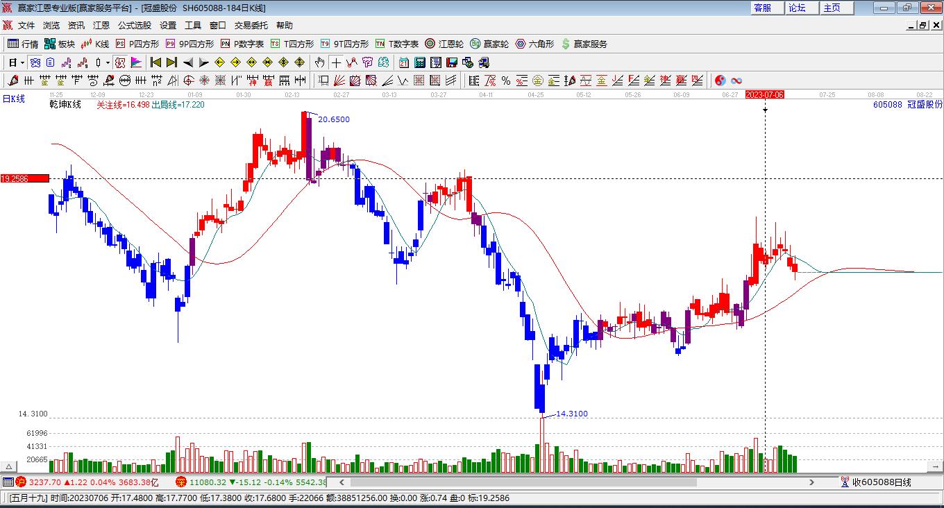 2月5日冠盛股份605088上穿藍(lán)色外軌線 以上影中陽線收盤
