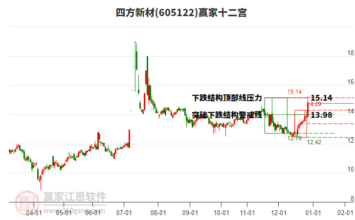 四方新材處于贏家江恩多頭次主線形態(tài),從12月29日形成頂分型后持續(xù)下跌,重心下移,今日跌破前低形成短期初次筑頂信號,短期多頭趨勢已被破壞,中長期目前都處于回調中。四方新材截至目前K線為上影中陽線,它的