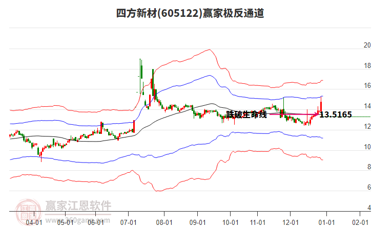 依據(jù)贏家江恩系統(tǒng)趨勢工具極反通道分析判斷四方新材605122運行在生命線以下弱勢區(qū)域,根據(jù)規(guī)則該股短線輕倉參與,股價跌至弱勢外軌線后波段再結合其它工具信號建倉。應用口訣是:生命線上強勢走,生命線下難抬頭;紅黃兩條外軌線,壓力支撐顯勢頭。