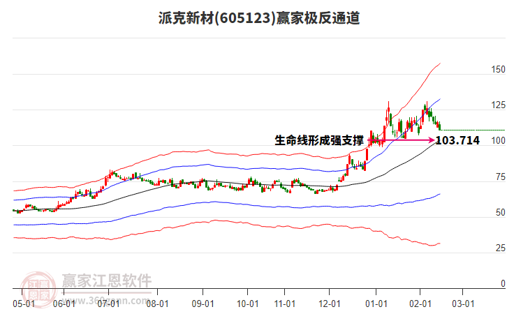 依據(jù)贏家江恩系統(tǒng)趨勢工具極反通道分析判斷派克新材605123運行在生命線以下弱勢區(qū)域,根據(jù)規(guī)則該股短線輕倉參與,股價跌至弱勢外軌線后波段再結(jié)合其它工具信號建倉。應(yīng)用口訣是:生命線上強(qiáng)勢走,生命線下難抬頭;紅黃兩條外軌線,壓力支撐顯勢頭。