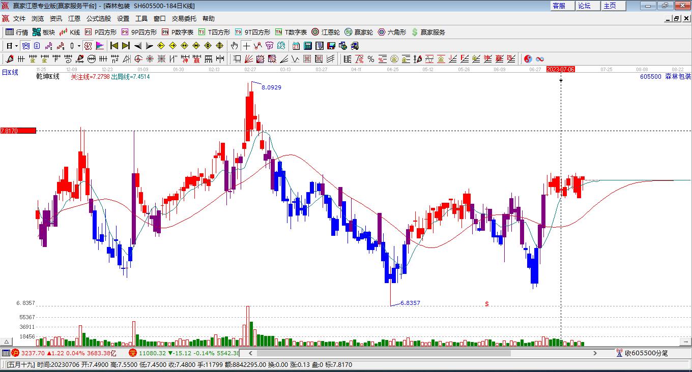 605500森林包裝最高價(jià)挑戰(zhàn)生命線 微漲1.23%